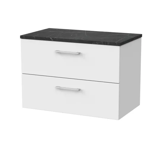 nuie Lux Kivo 800mm 2- Drawer Wall Hung Unit with a Laminate Worktop - Matt White