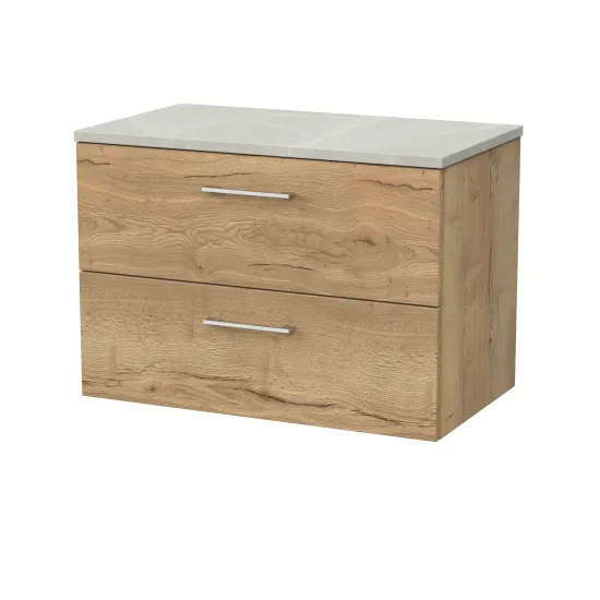 nuie Lux Kivo 800mm 2- Drawer Wall Hung Unit with a Laminate Worktop - Autumn Oak
