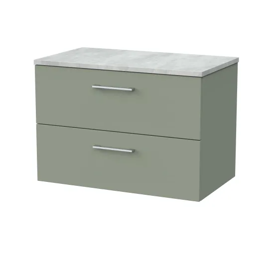 nuie Lux Kivo 800mm 2- Drawer Wall Hung Unit with a Laminate Worktop - Fern Green