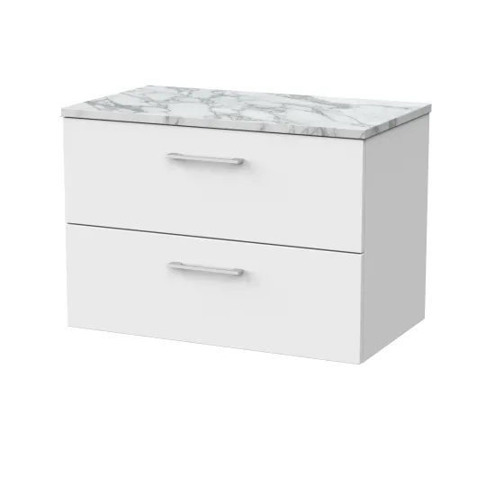 nuie Lux Kivo 800mm 2- Drawer Wall Hung Unit with a Laminate Worktop - Matt White