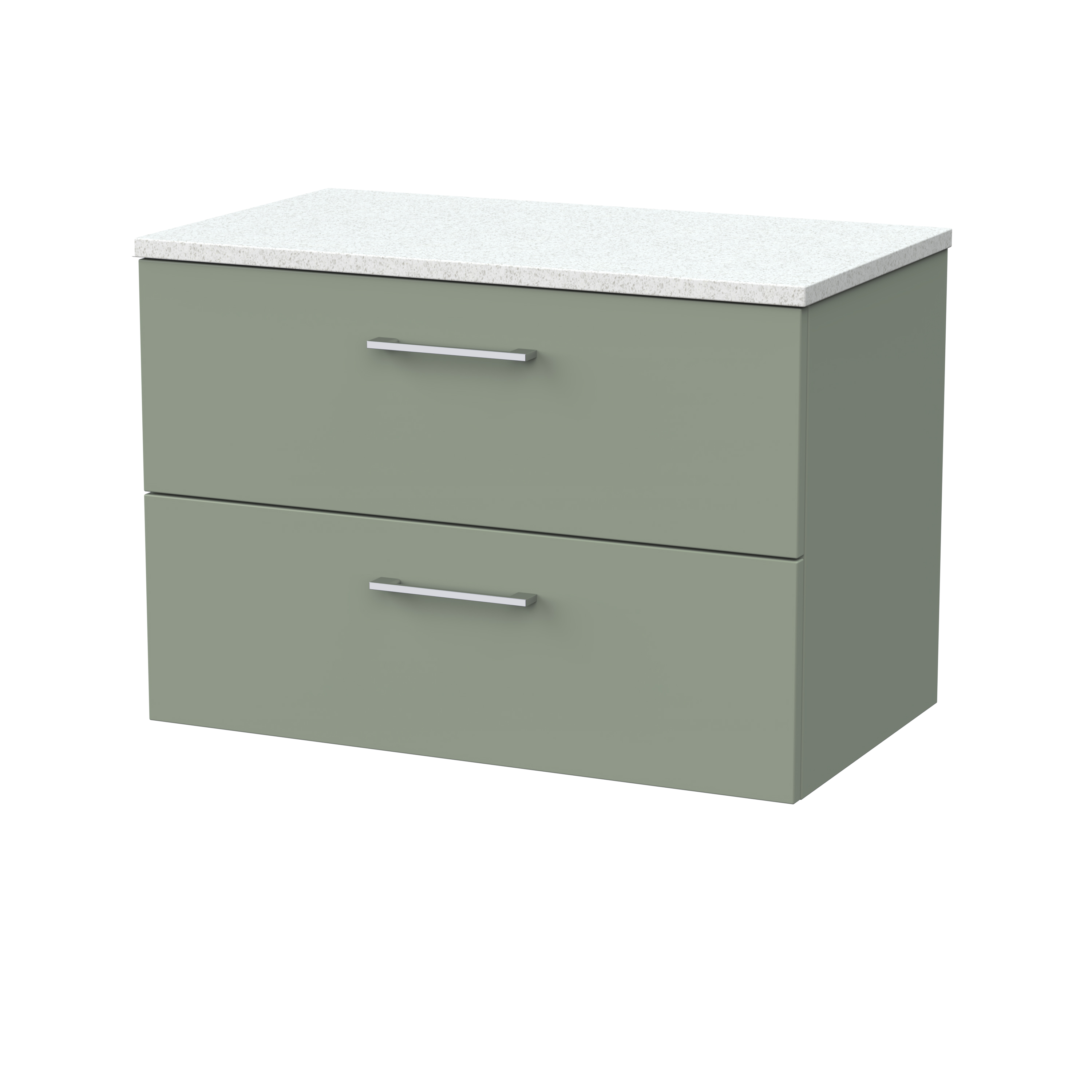 nuie Lux Kivo 800mm 2- Drawer Wall Hung Unit with a Laminate Worktop - Fern Green