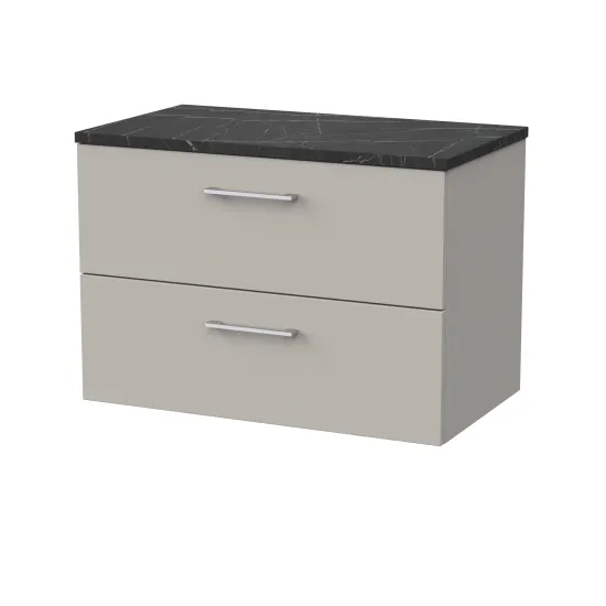 nuie Lux Kivo 800mm 2- Drawer Wall Hung Unit with a Laminate Worktop - Pebble Grey
