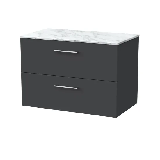 Kivo 800mm 2- Drawer Wall Hung Unit with a Marble Top in Carrera