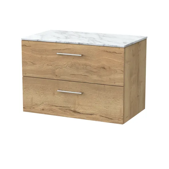 nuie Lux Kivo 800mm 2- Drawer Wall Hung Unit with a Marble Top in Carrera - Autumn Oak