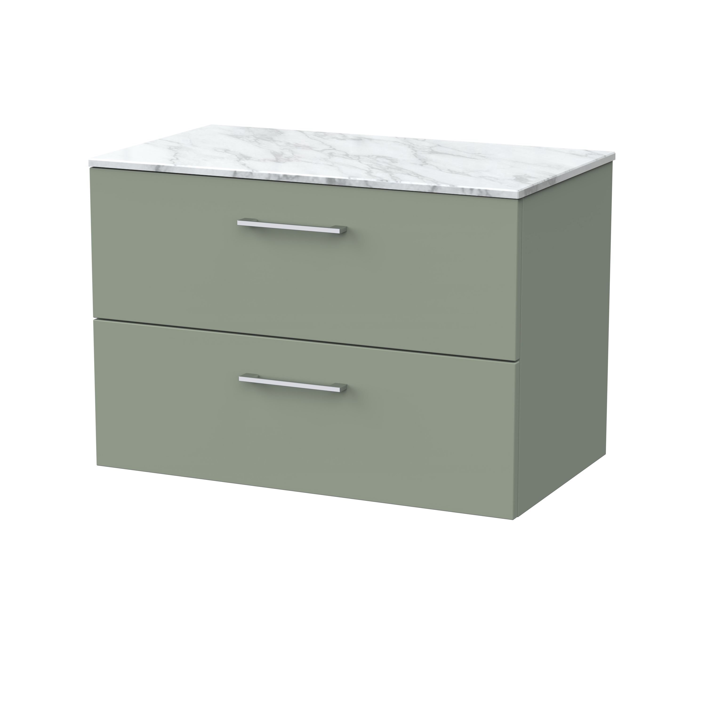 nuie Lux Kivo 800mm 2- Drawer Wall Hung Unit with a Marble Top in Carrera - Fern Green