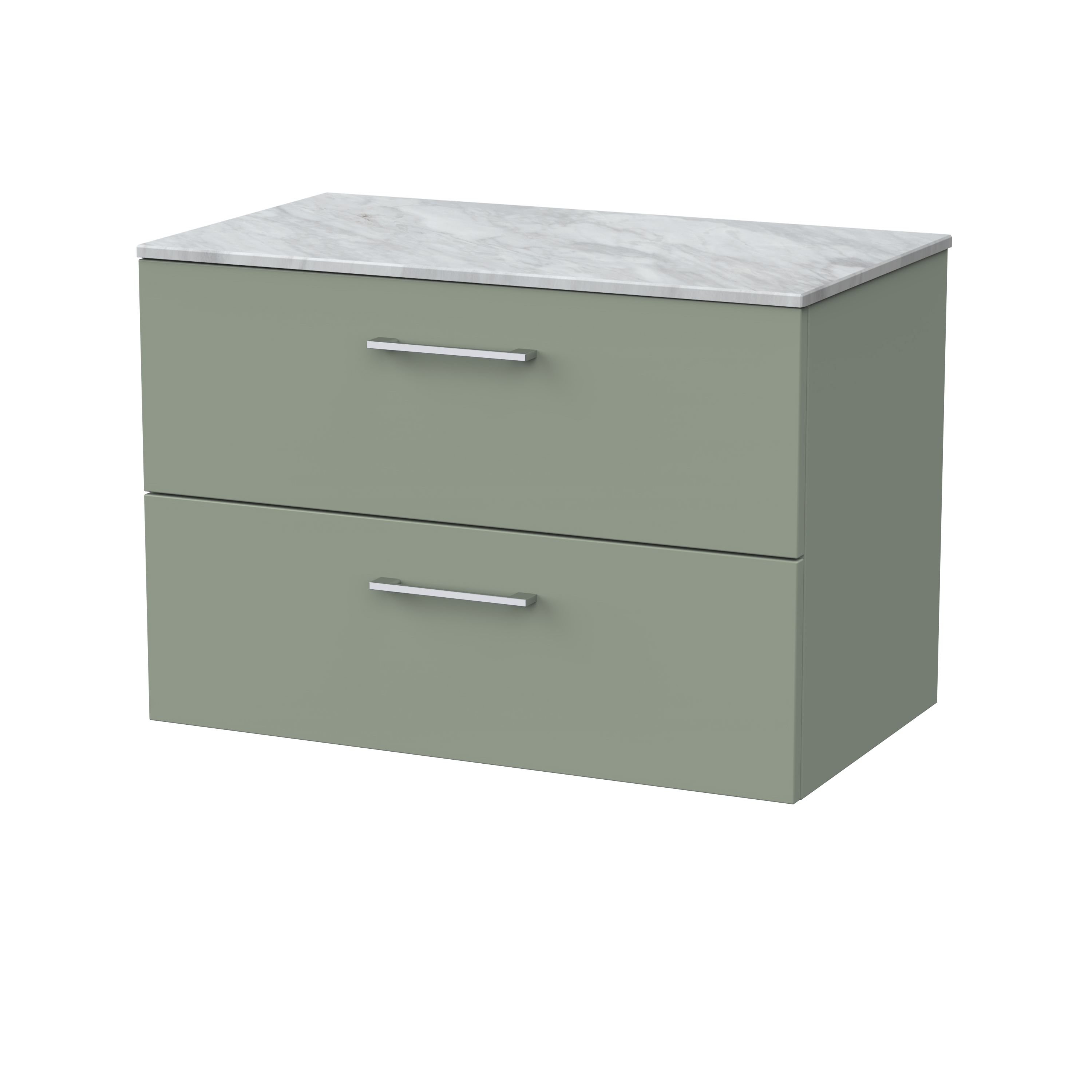 nuie Lux Kivo 800mm 2- Drawer Wall Hung Unit with a Marble Top in Grey - Fern Green