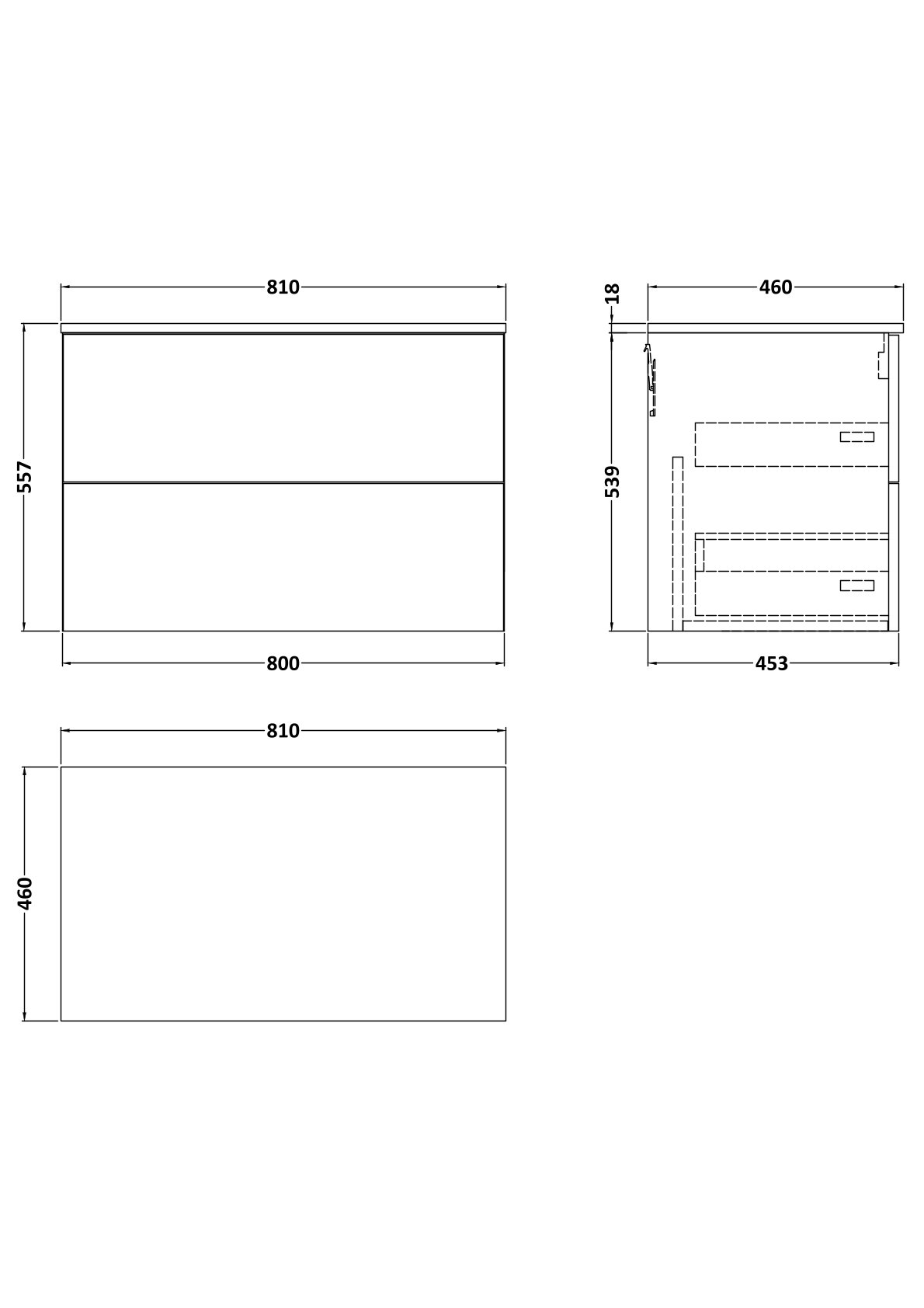 Kivo 800mm 2- Drawer Wall Hung Unit with a Marble Top in Grey
