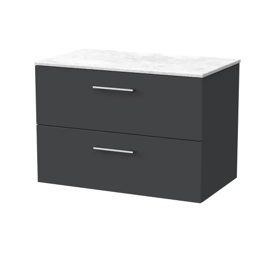 nuie Lux Kivo 800mm 2- Drawer Wall Hung Unit with a Marble Top in White - Soft Black