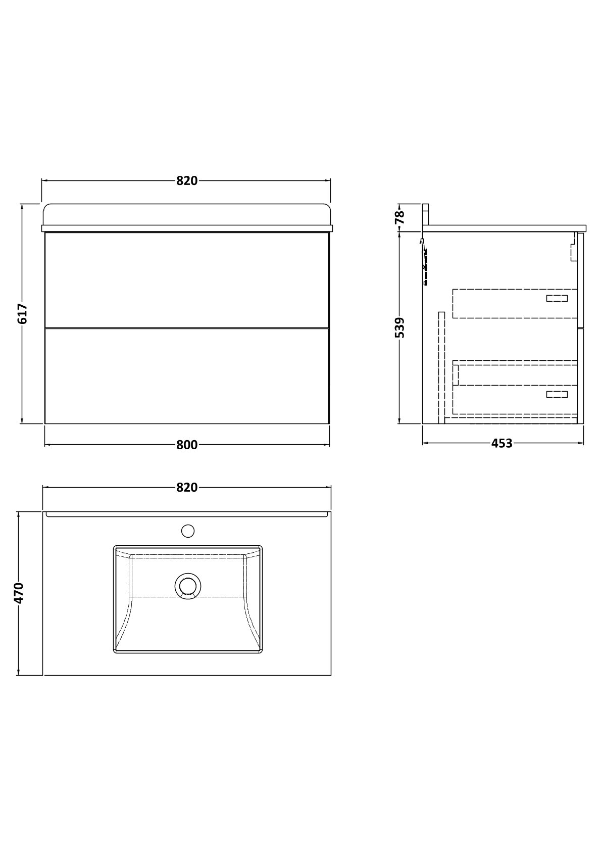 Kivo 800mm 2- Drawer Wall Hung Unit with a Single Bowl Marble Top 1 Tap Hole in White