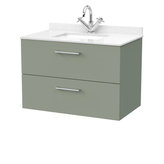 nuie Lux Kivo 800mm 2- Drawer Wall Hung Unit with a Single Bowl Marble Top 1 Tap Hole in White - Fern Green