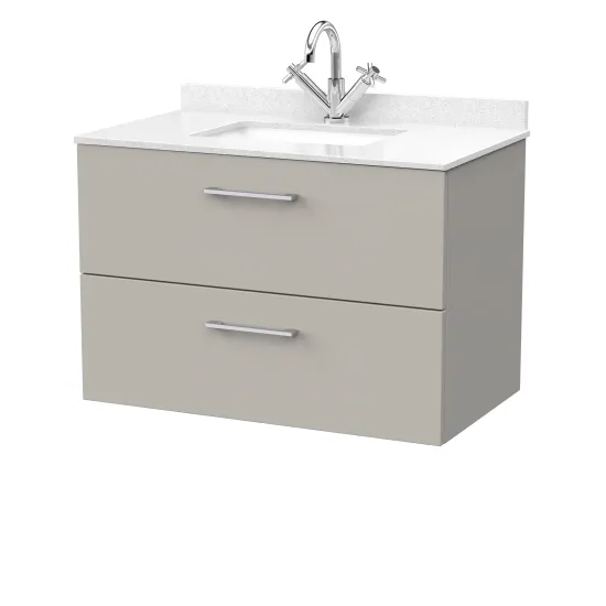 nuie Lux Kivo 800mm 2- Drawer Wall Hung Unit with a Single Bowl Marble Top 1 Tap Hole in White - Pebble Grey