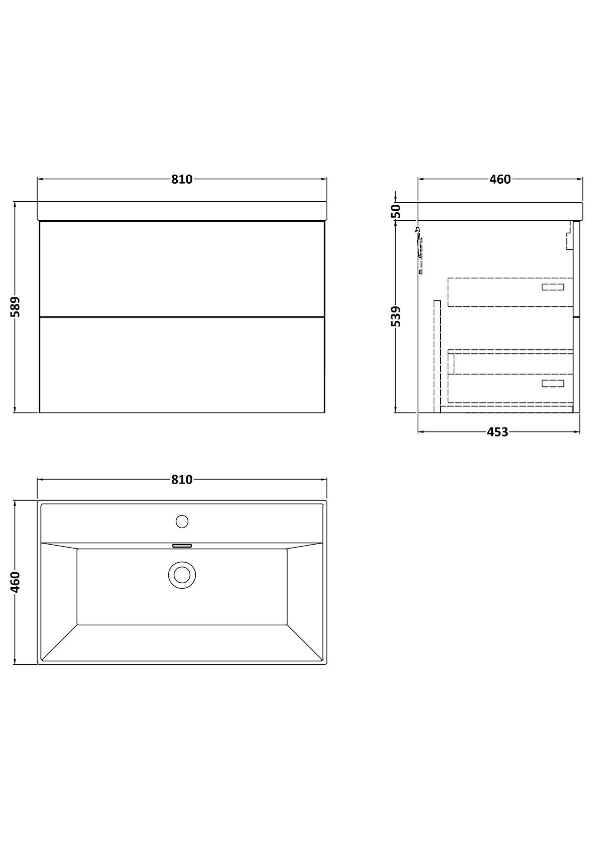 Kivo 800mm 2- Drawer Wall Hung Unit with a Thin-Edge Basin - 1 Tap Hole