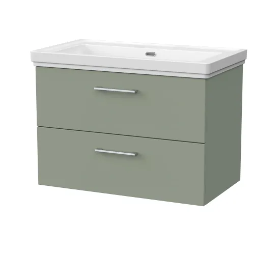 nuie Lux Kivo 800mm 2- Drawer Wall Hung Unit with a Traditional Fireclay Basin - 0 Tap Holes - Fern Green