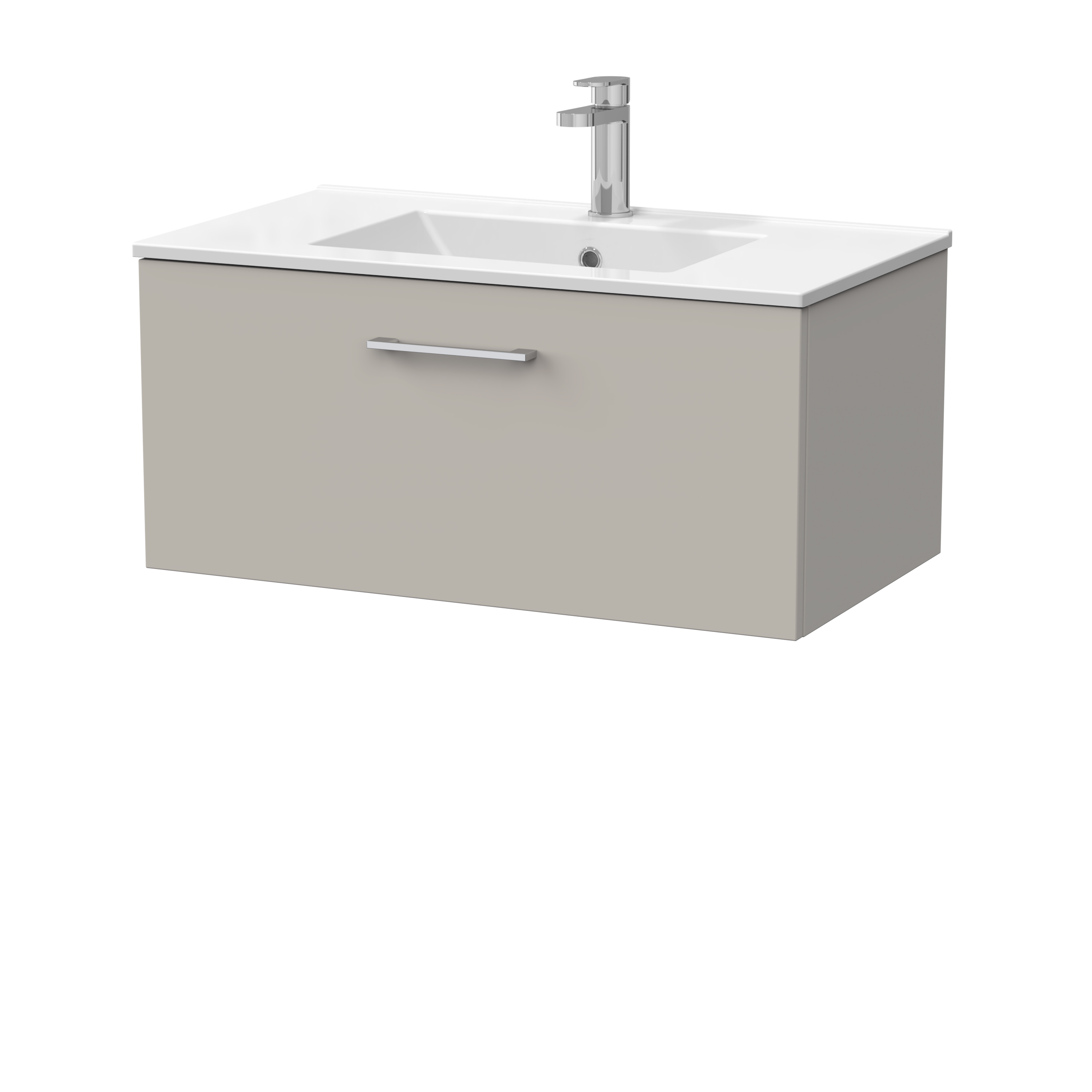 nuie Lux Kivo 800mm Single Drawer Wall Hung Unit with a 1 Tap Hole Minimalist Basin Top - Pebble Grey