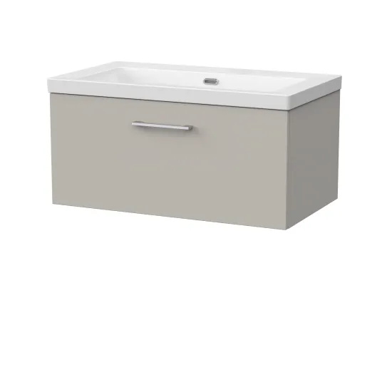 nuie Lux Kivo 800mm Single Drawer Wall Hung Unit with a Contemporary Basin - 0 Tap Holes - Pebble Grey