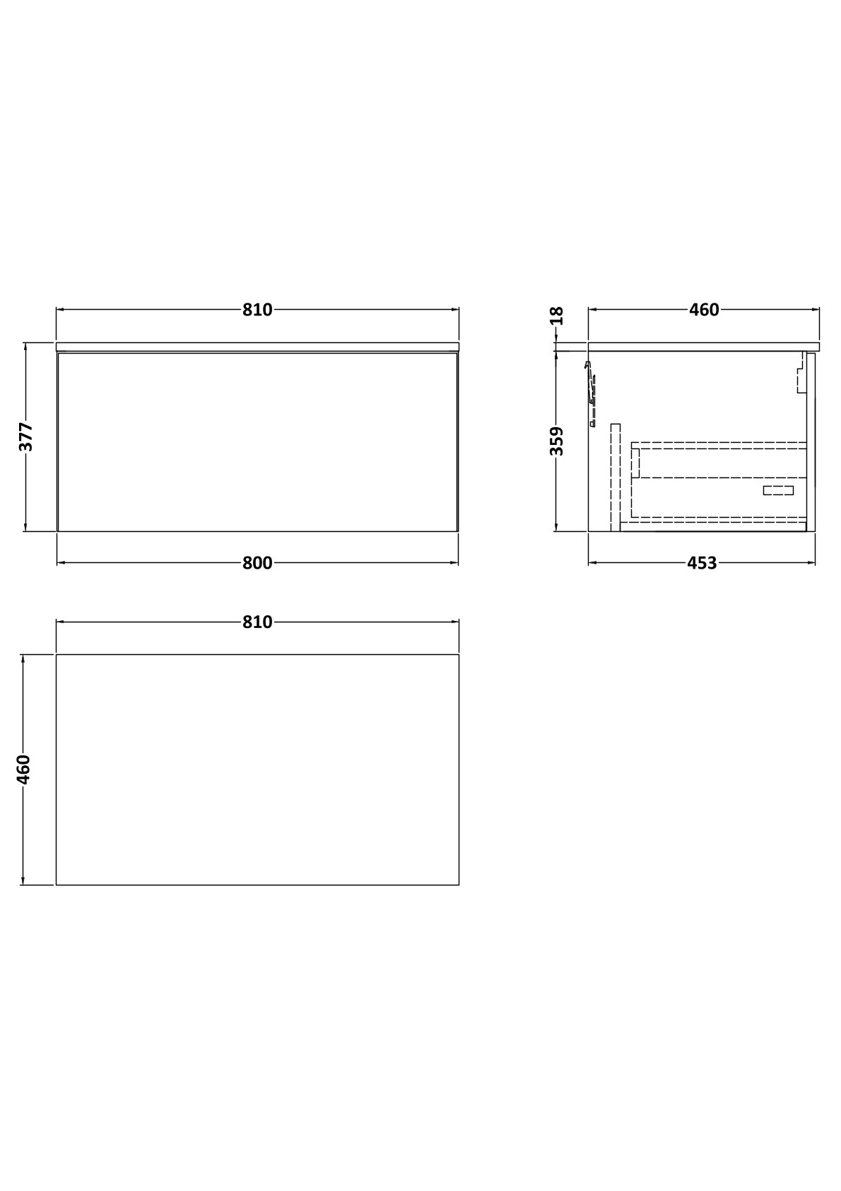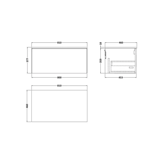 Kivo 800mm Single Drawer Wall Hung Unit with a Furniture Worktop