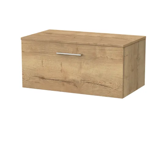 nuie Lux Kivo 800mm Single Drawer Wall Hung Unit with a Furniture Worktop - Autumn Oak