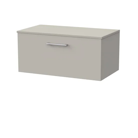 nuie Lux Kivo 800mm Single Drawer Wall Hung Unit with a Furniture Worktop - Pebble Grey