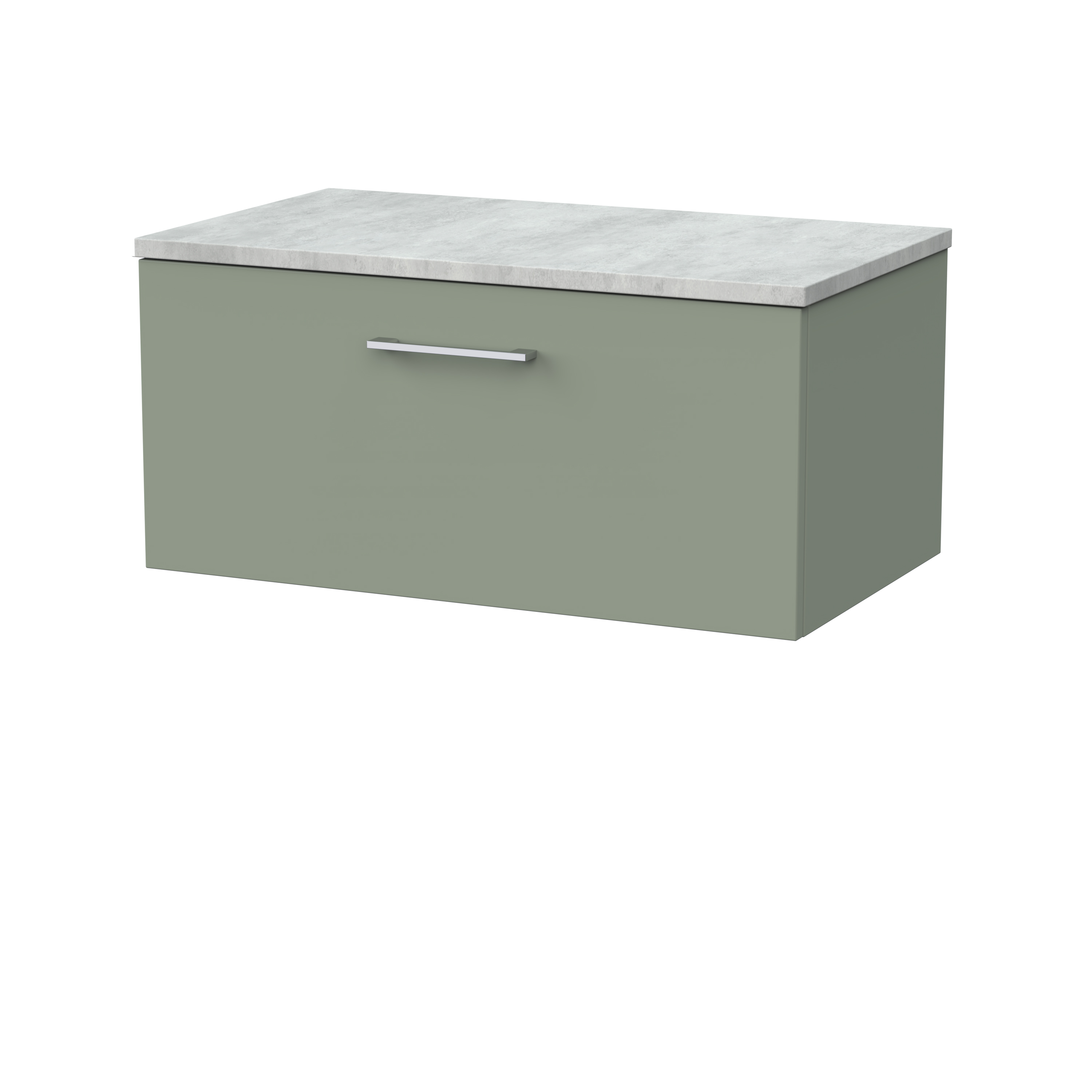 nuie Lux Kivo 800mm Single Drawer Wall Hung Unit with a Laminate Worktop - Fern Green