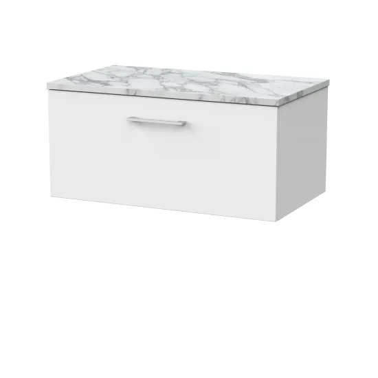 nuie Lux Kivo 800mm Single Drawer Wall Hung Unit with a Laminate Worktop - Matt White