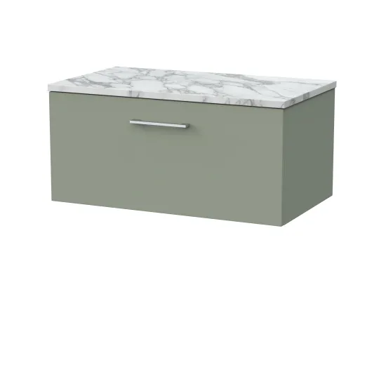 nuie Lux Kivo 800mm Single Drawer Wall Hung Unit with a Laminate Worktop - Fern Green