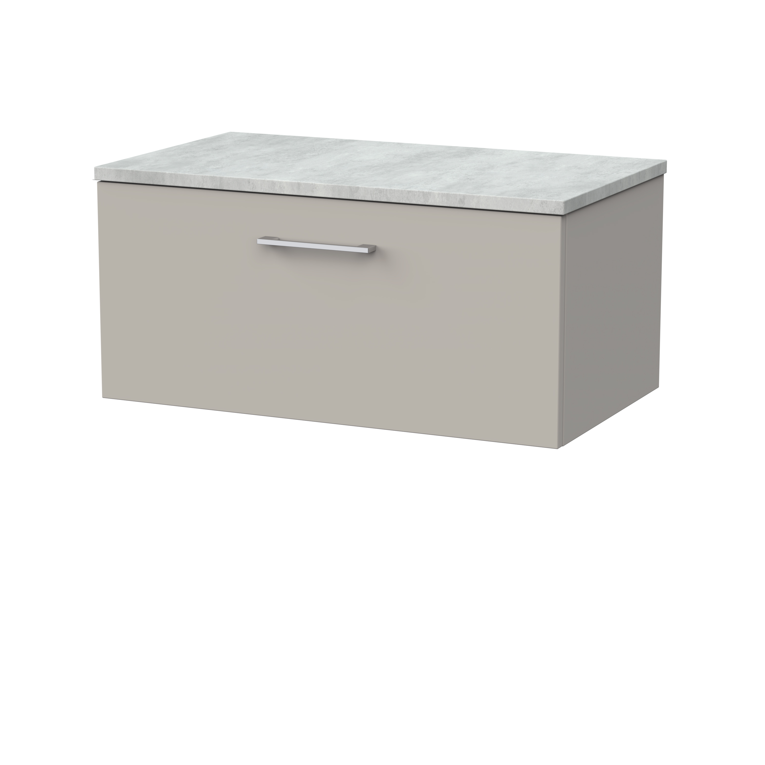 nuie Lux Kivo 800mm Single Drawer Wall Hung Unit with a Laminate Worktop - Pebble Grey