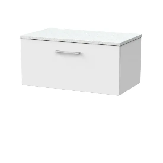 nuie Lux Kivo 800mm Single Drawer Wall Hung Unit with a Laminate Worktop - Matt White