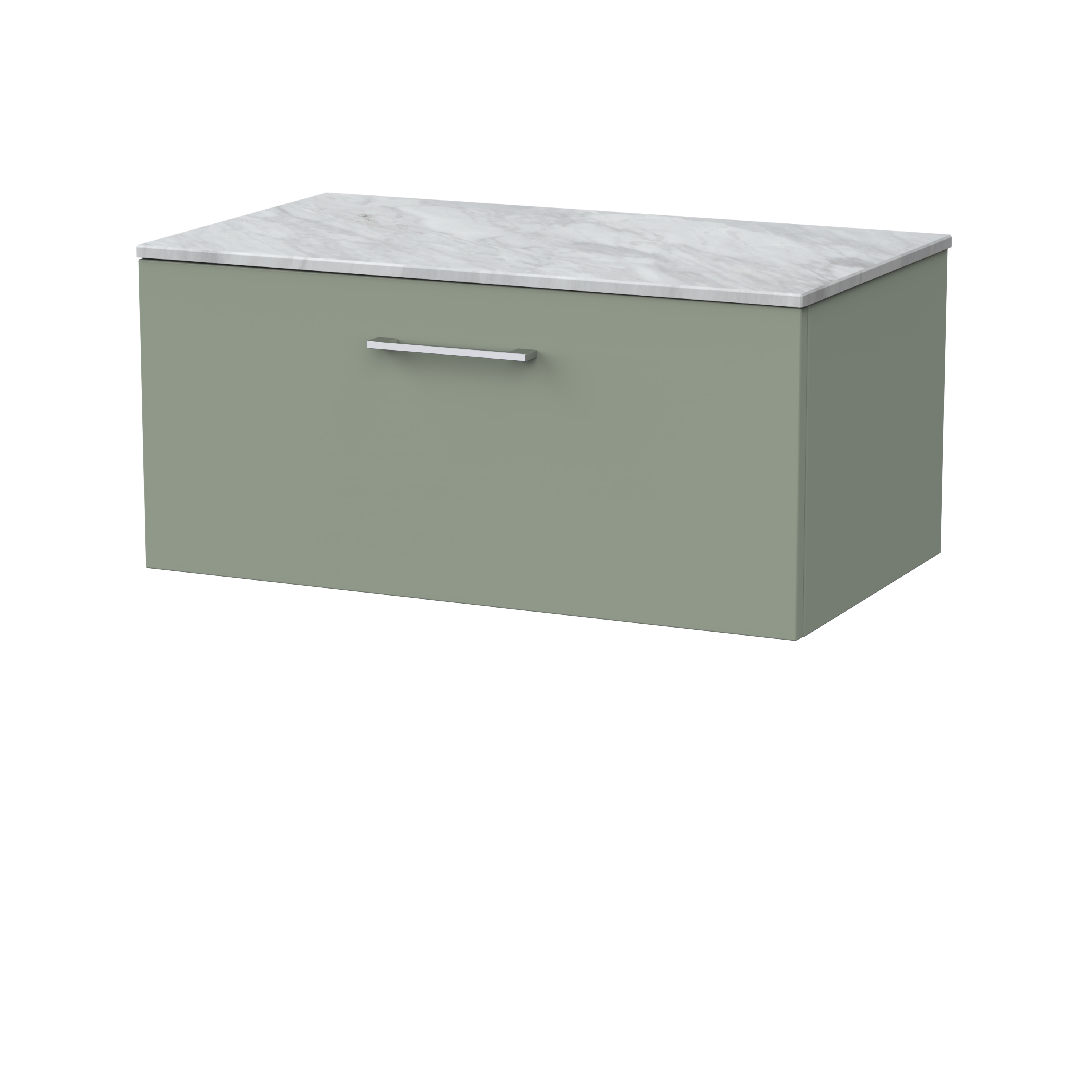 nuie Lux Kivo 800mm Single Drawer Wall Hung Unit with a Marble Top in Grey - Fern Green