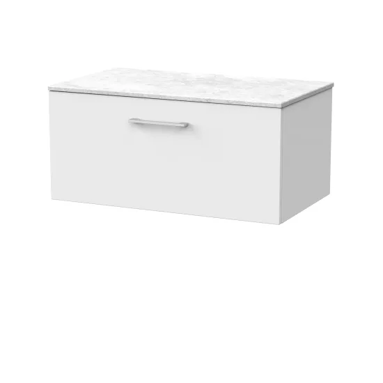 Kivo 800mm Single Drawer Wall Hung Unit with a Marble Top in White