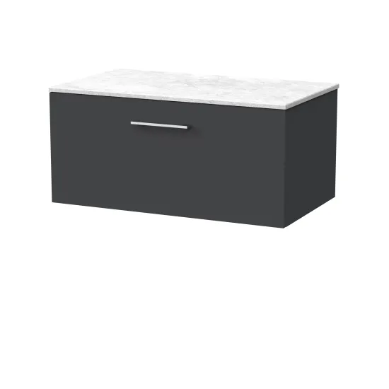 nuie Lux Kivo 800mm Single Drawer Wall Hung Unit with a Marble Top in White - Soft Black