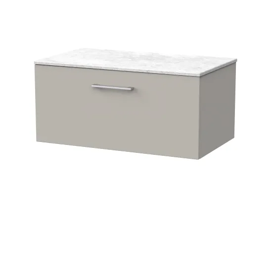 nuie Lux Kivo 800mm Single Drawer Wall Hung Unit with a Marble Top in White - Pebble Grey