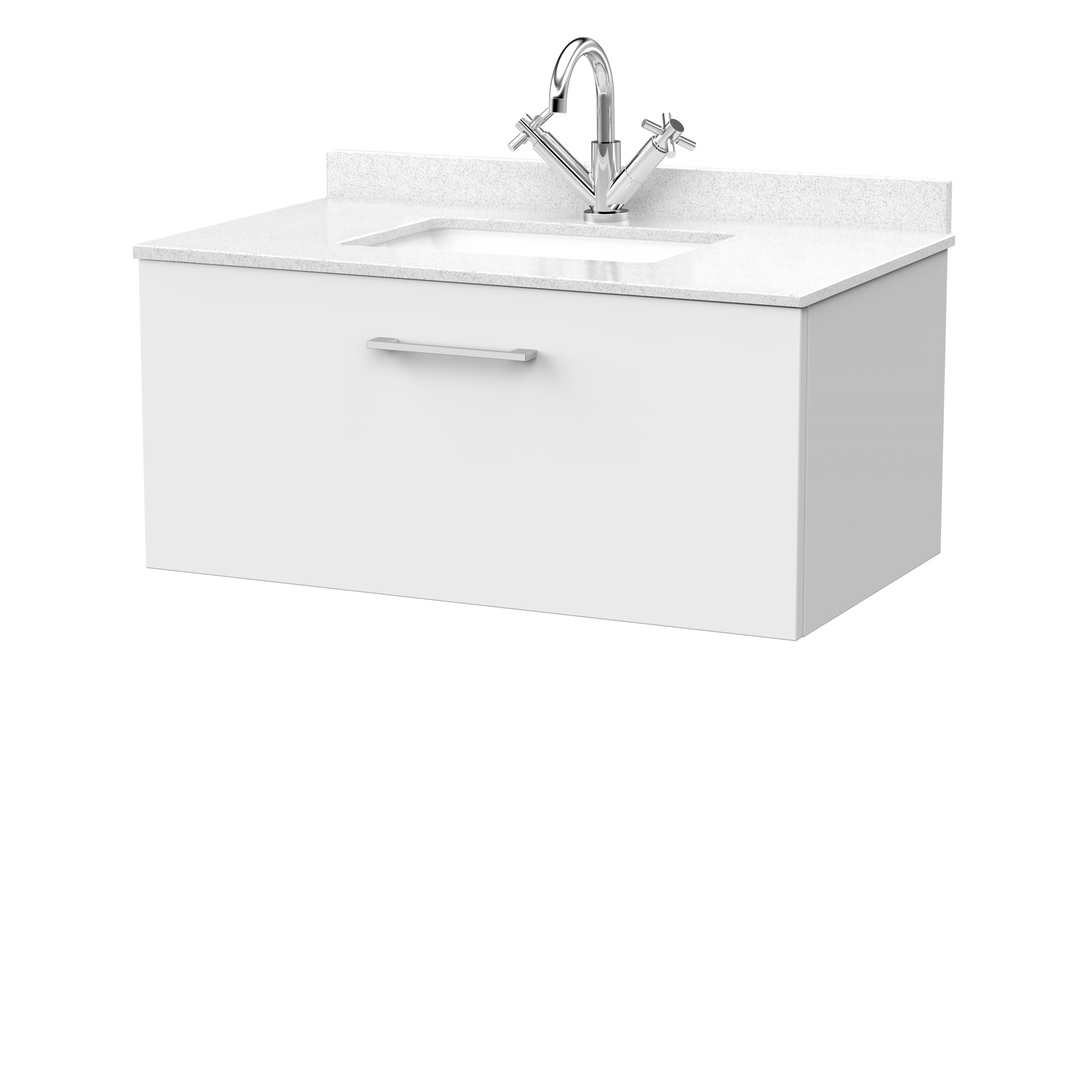 nuie Lux Kivo 800mm Single Drawer Wall Hung Unit with a Single Bowl Marble Top 1 Tap Hole in White - Matt White