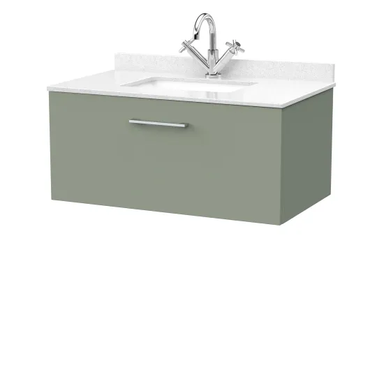 nuie Lux Kivo 800mm Single Drawer Wall Hung Unit with a Single Bowl Marble Top 1 Tap Hole in White - Fern Green
