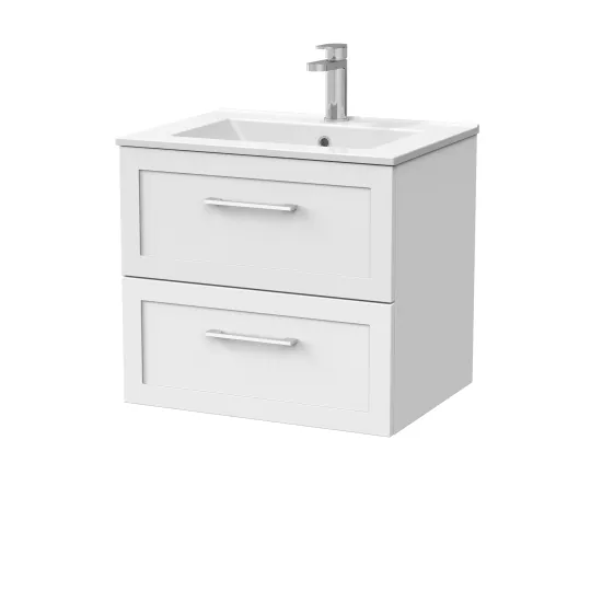 nuie Lux Larck 600mm 2- Drawer Wall Hung Unit with 1 Tap Hole Minimalist Basin Top - Matt White