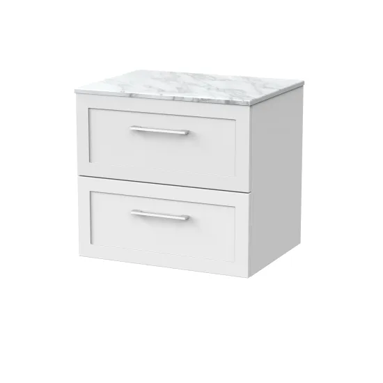 nuie Lux Larck 600mm 2- Drawer Wall Hung Unit with Carrera Marble Top - Matt White