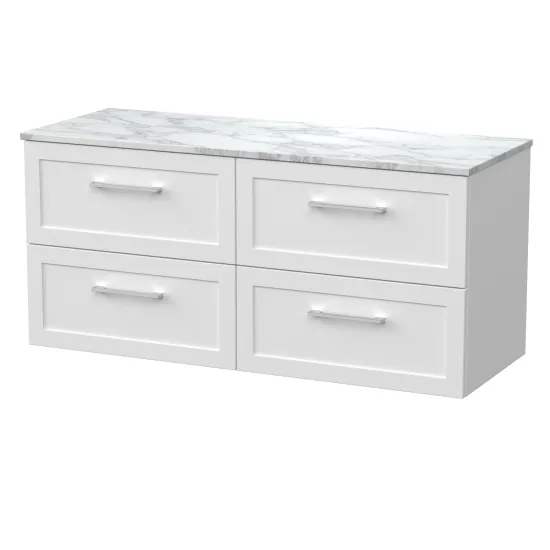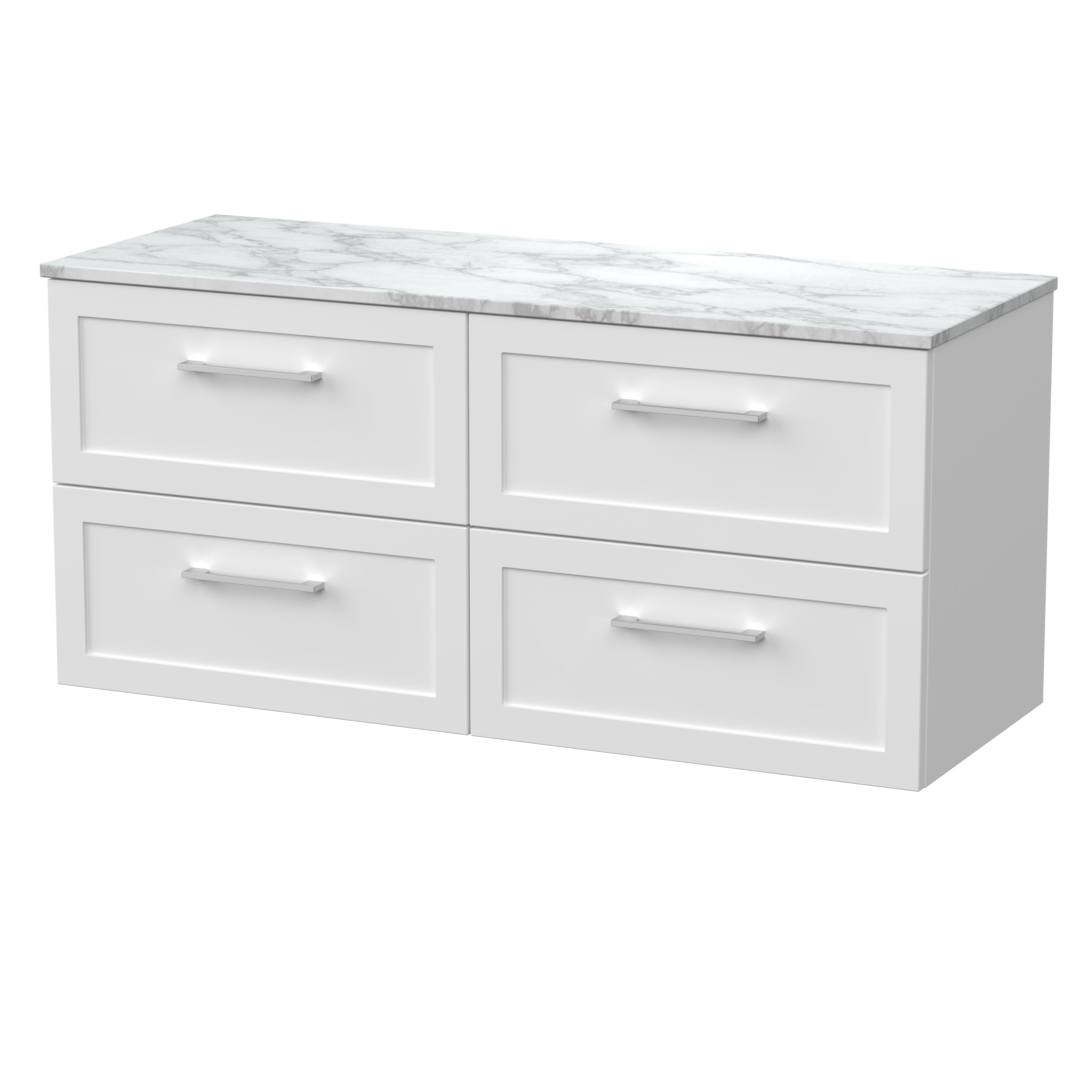 nuie Lux Larck 600mm 2- Drawer Wall Hung Unit with Carrera Marble Top - Matt White