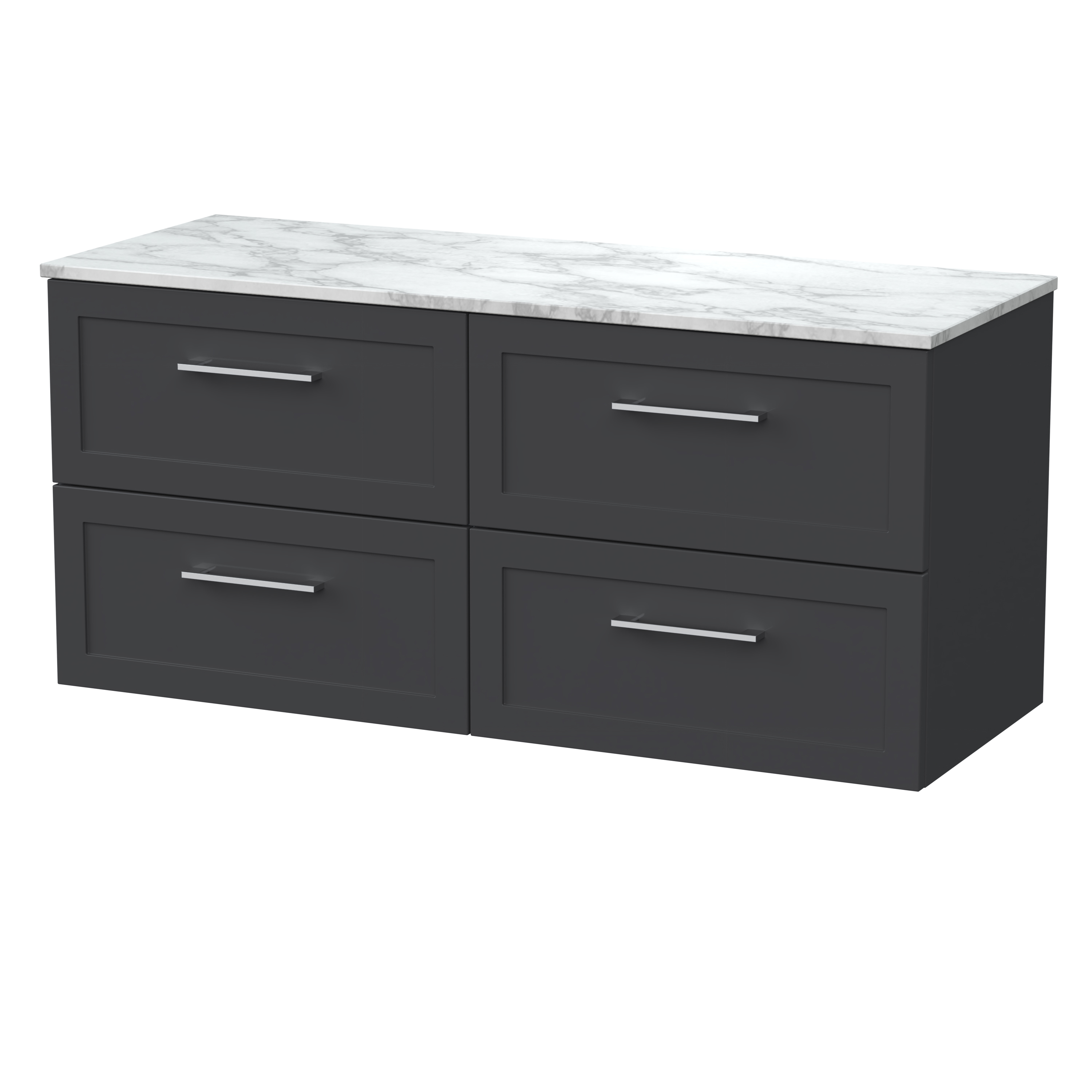 nuie Lux Larck 600mm 2- Drawer Wall Hung Unit with Carrera Marble Top - Soft Black