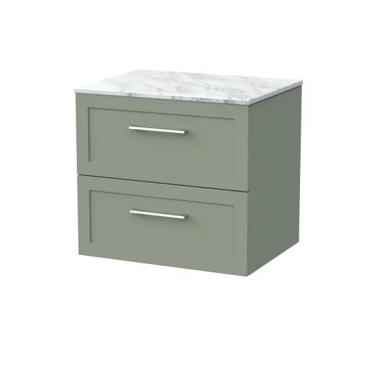 nuie Lux Larck 600mm 2- Drawer Wall Hung Unit with Carrera Marble Top - Fern Green