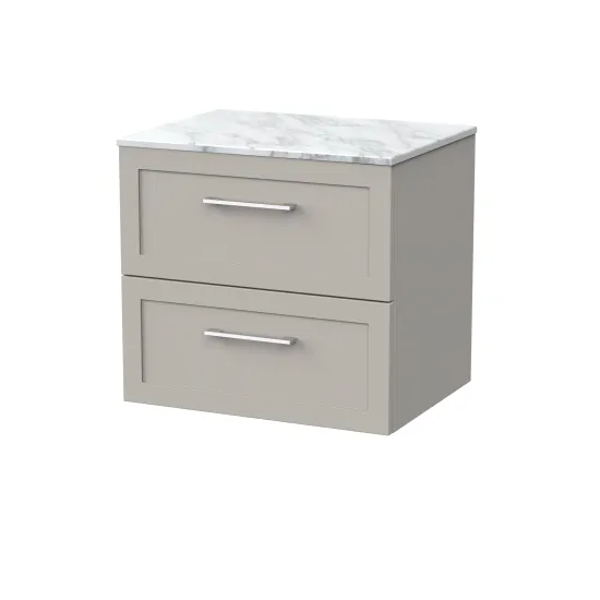 Larck 600mm 2- Drawer Wall Hung Unit with Carrera Marble Top