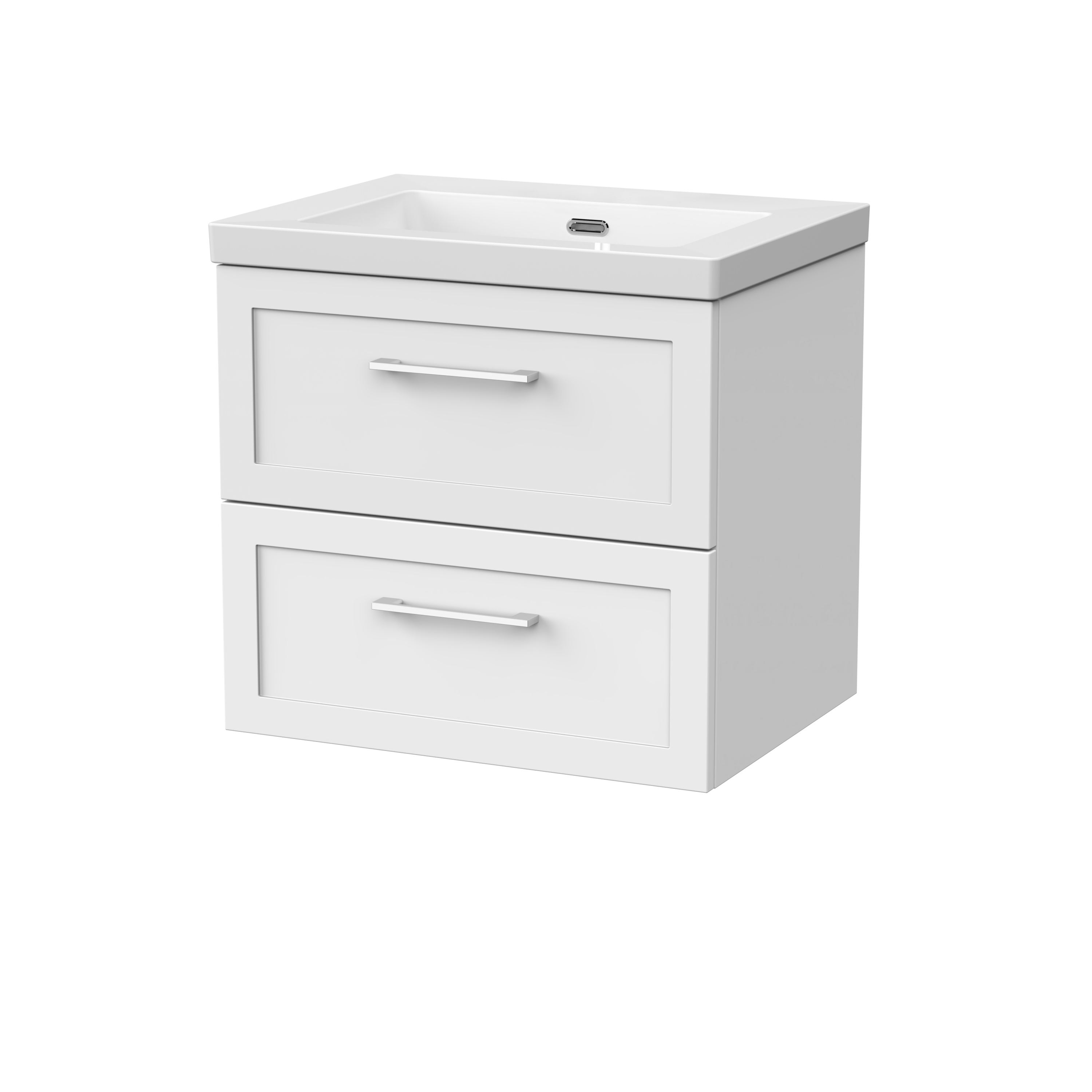 nuie Lux Larck 600mm 2- Drawer Wall Hung Unit with Contemporary Fireclay Basin - 0 Tap Holes - Matt White