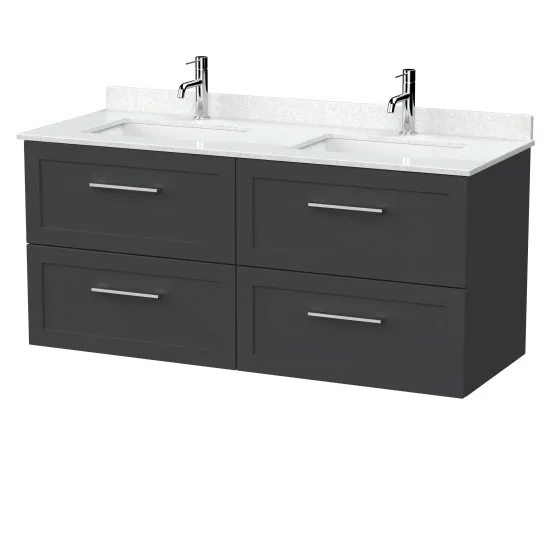 nuie Lux Larck 600mm 2- Drawer Wall Hung Unit with Double Bowl Marble Top 1 Tap Hole in White - Soft Black