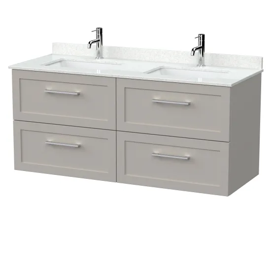 nuie Lux Larck 600mm 2- Drawer Wall Hung Unit with Double Bowl Marble Top 1 Tap Hole in White - Pebble Grey
