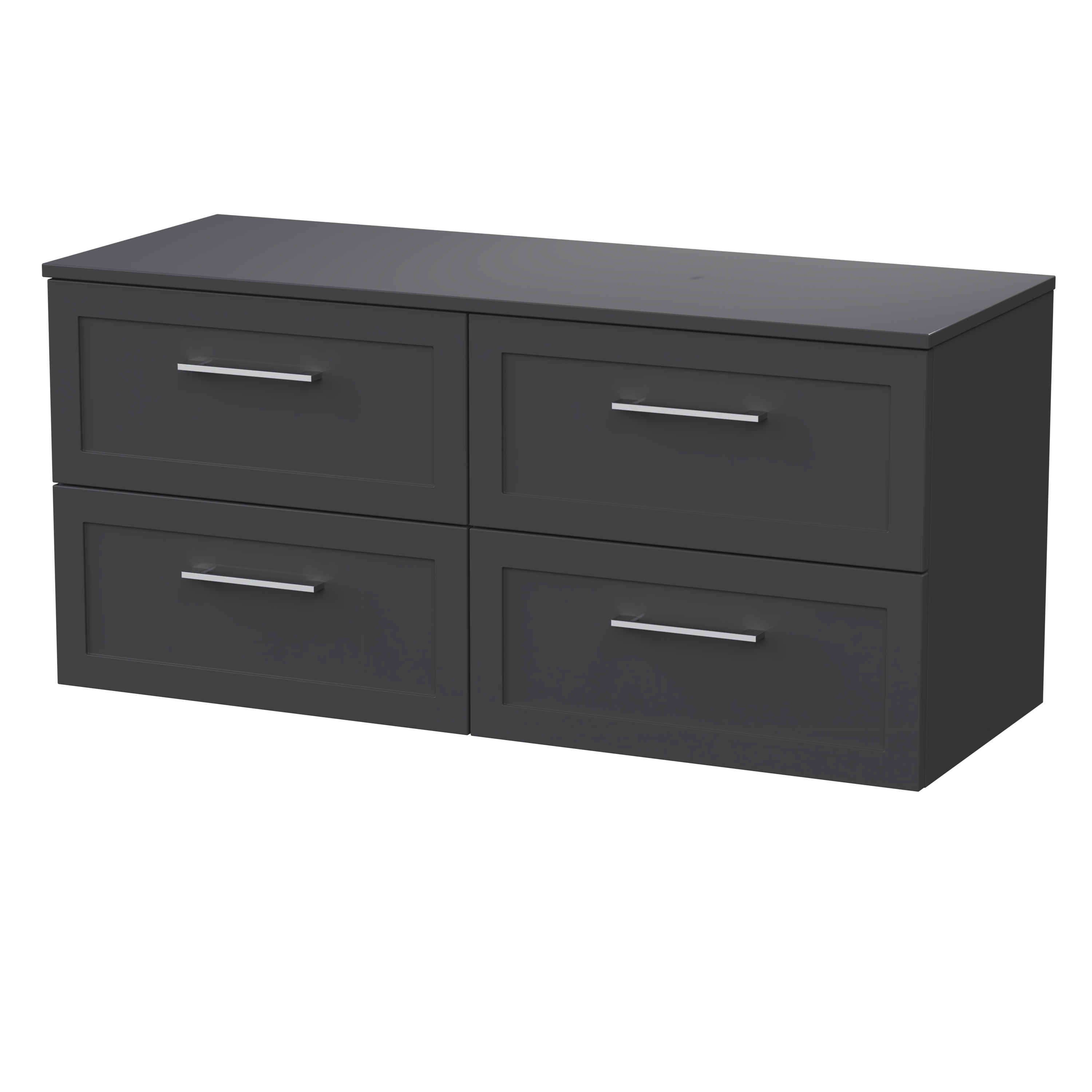 nuie Lux Larck 600mm 2- Drawer Wall Hung Unit with Furniture Worktop - Soft Black