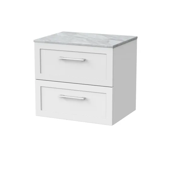 nuie Lux Larck 600mm 2- Drawer Wall Hung Unit with Grey Marble Top - Matt White