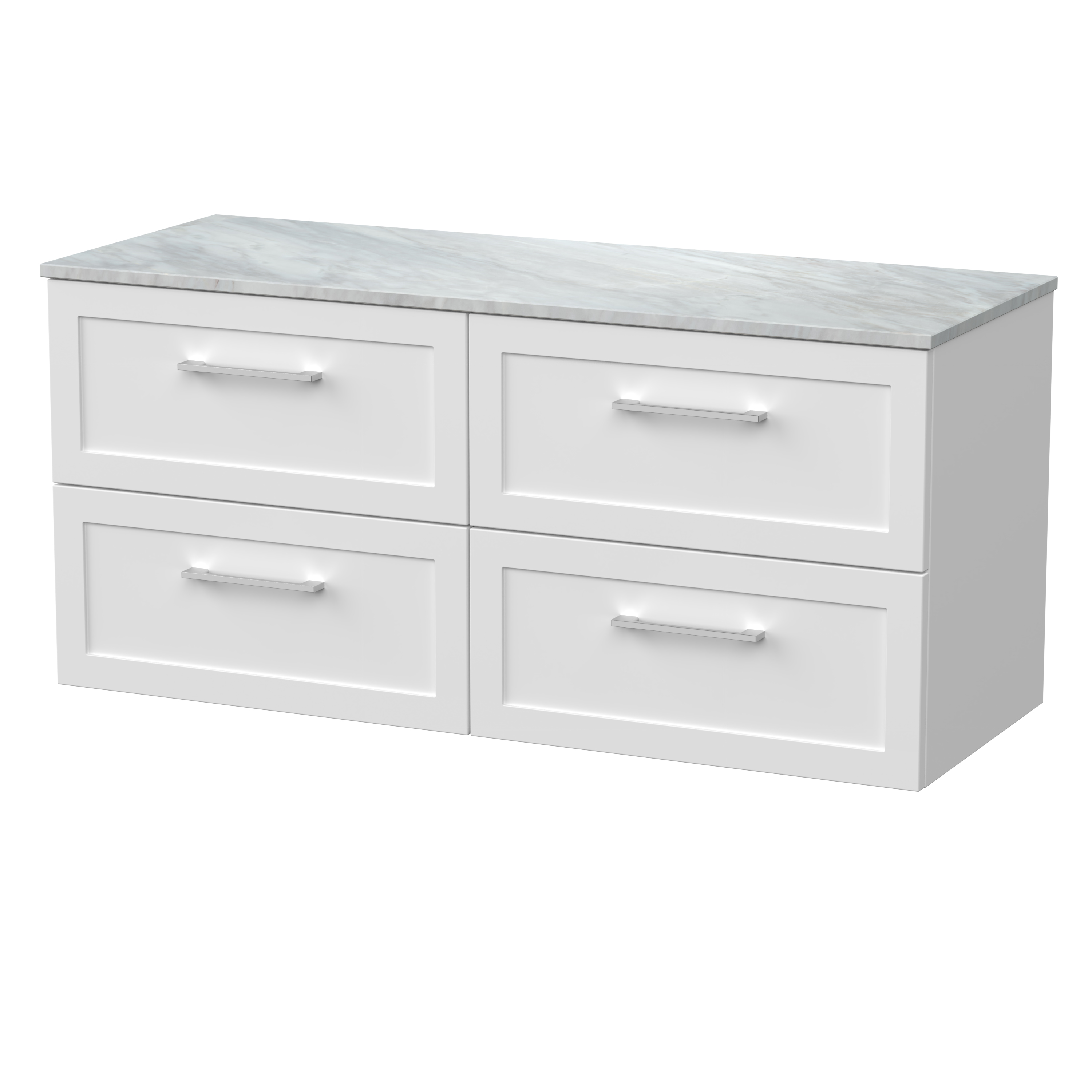 nuie Lux Larck 600mm 2- Drawer Wall Hung Unit with Grey Marble Top - Matt White