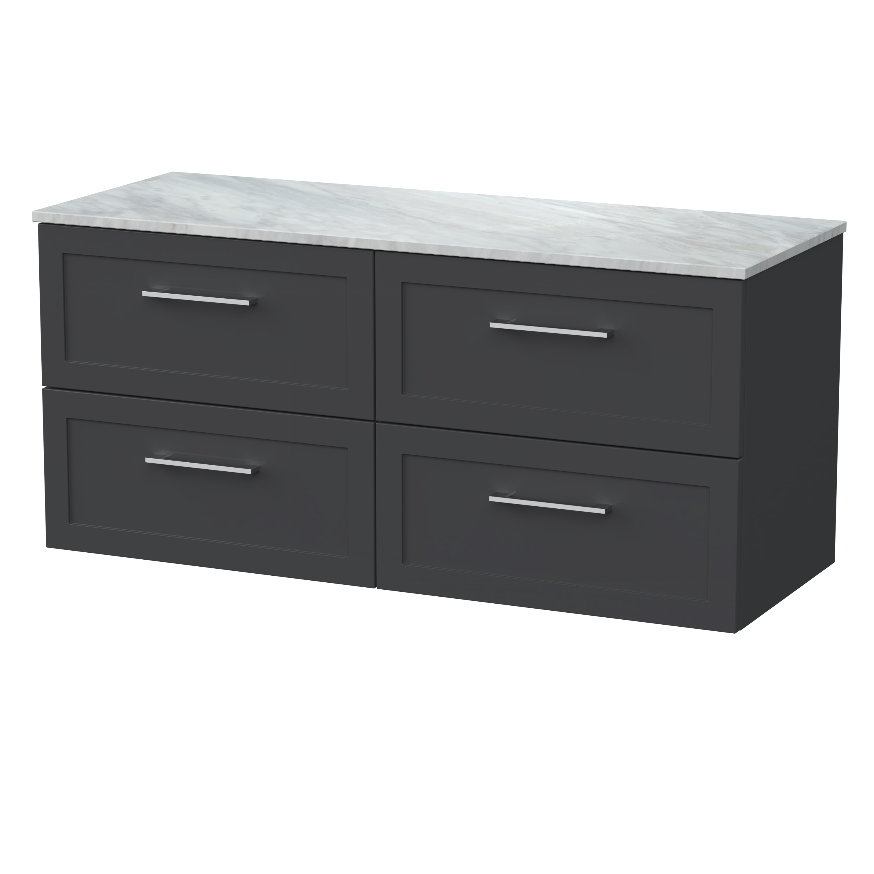 nuie Lux Larck 600mm 2- Drawer Wall Hung Unit with Grey Marble Top - Soft Black
