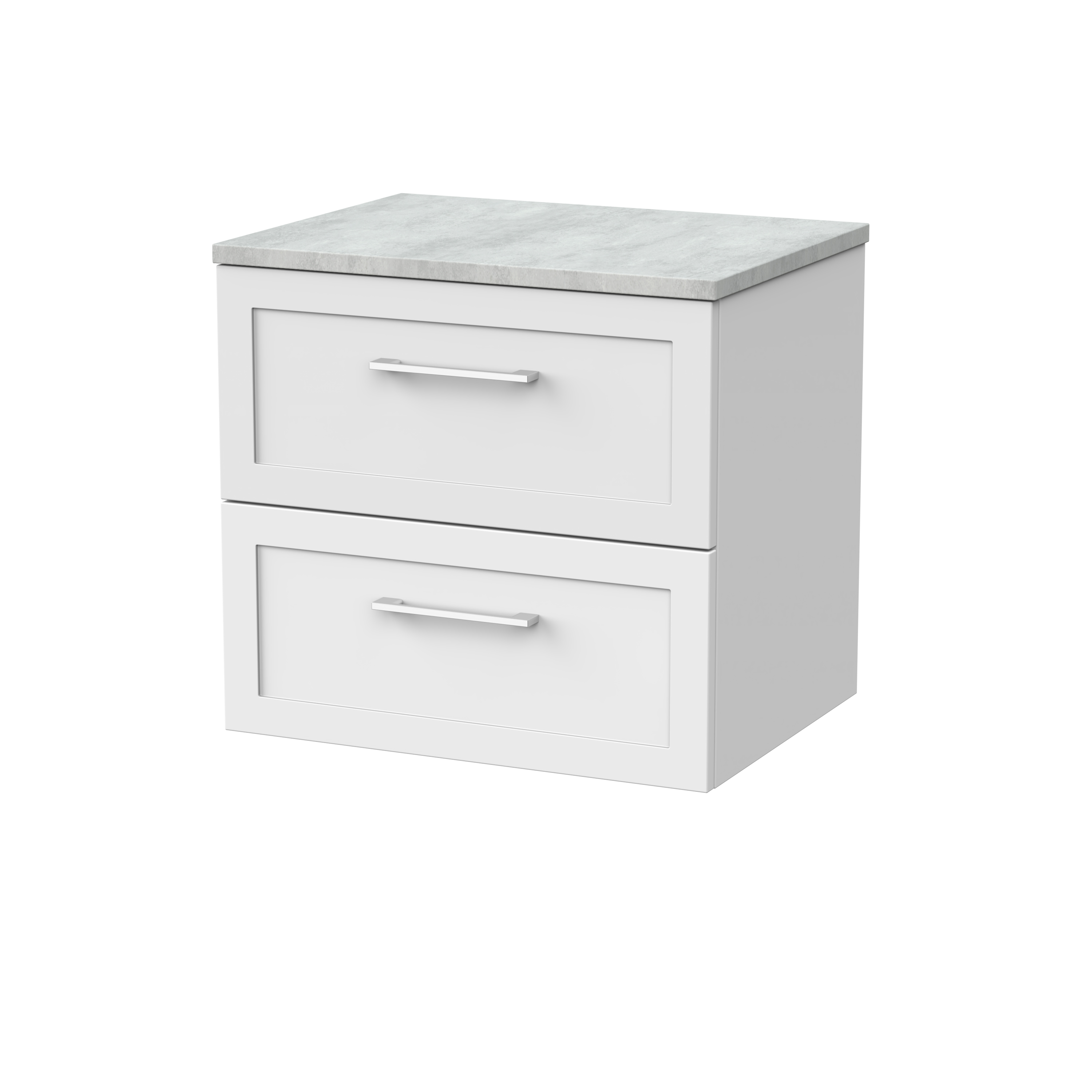 nuie Lux Larck 600mm 2- Drawer Wall Hung Unit with Laminate Worktop - Matt White