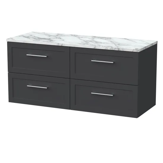 nuie Lux Larck 600mm 2- Drawer Wall Hung Unit with Laminate Worktop - Soft Black