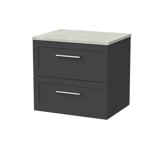 nuie Lux Larck 600mm 2- Drawer Wall Hung Unit with Laminate Worktop - Soft Black