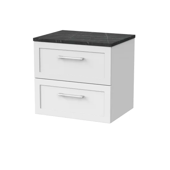 nuie Lux Larck 600mm 2- Drawer Wall Hung Unit with Laminate Worktop - Matt White